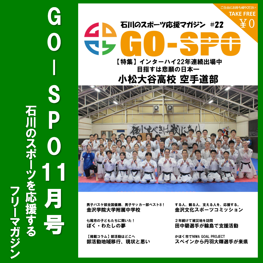 - 【GOSPO】2025年11月号小松大谷高校空手道部や金沢学院大学附属中学校男子バスケ部・男子サッカー部を特集しています。