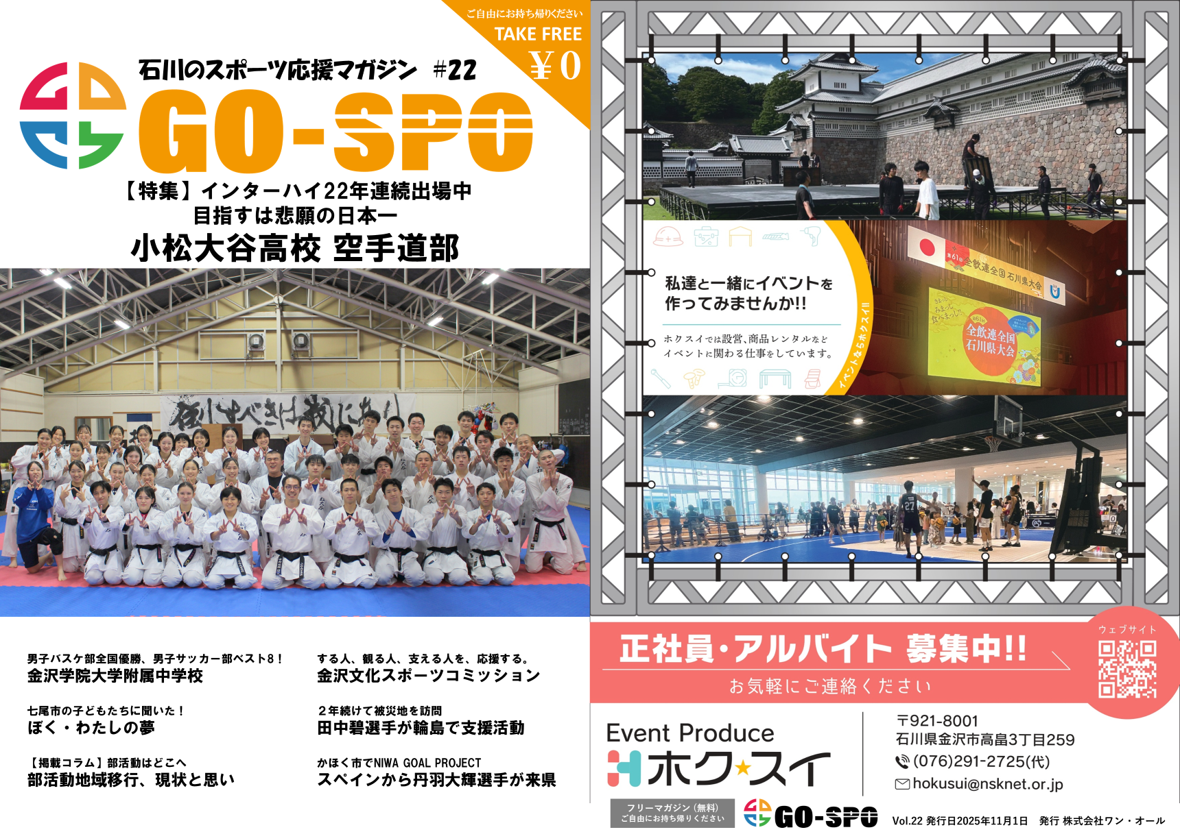 小松大谷高校空手道部や金沢学院大学附属中学校男子バスケ部・男子サッカー部を特集しています。