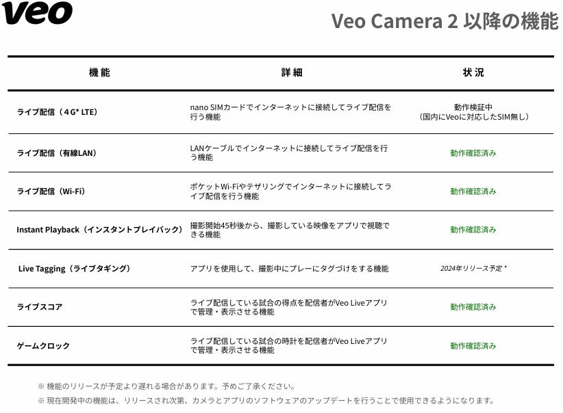 さらにveo3はライブ配信機能を搭載!リアルタイムで試合映像を世界に配信します。