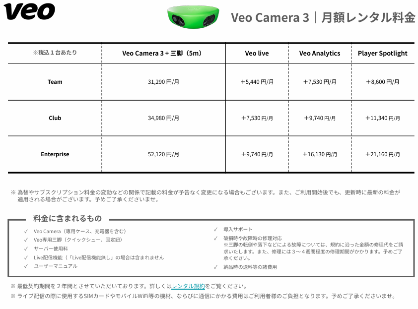 また、1台で登録できるチーム数が、Teamは1チーム、Clubは5チームとなります。例えば、複数チームでカメラを共有利用される場合や、ジュニアから社会人まで、複数カテゴリーがあるチームで、映像の管理画面をカテゴリー毎に分けたい場合などにはClubがおすすめです。